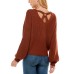 Juniors’ Mixed-Knit Strappy-Back Sweater, Umber, X-Large