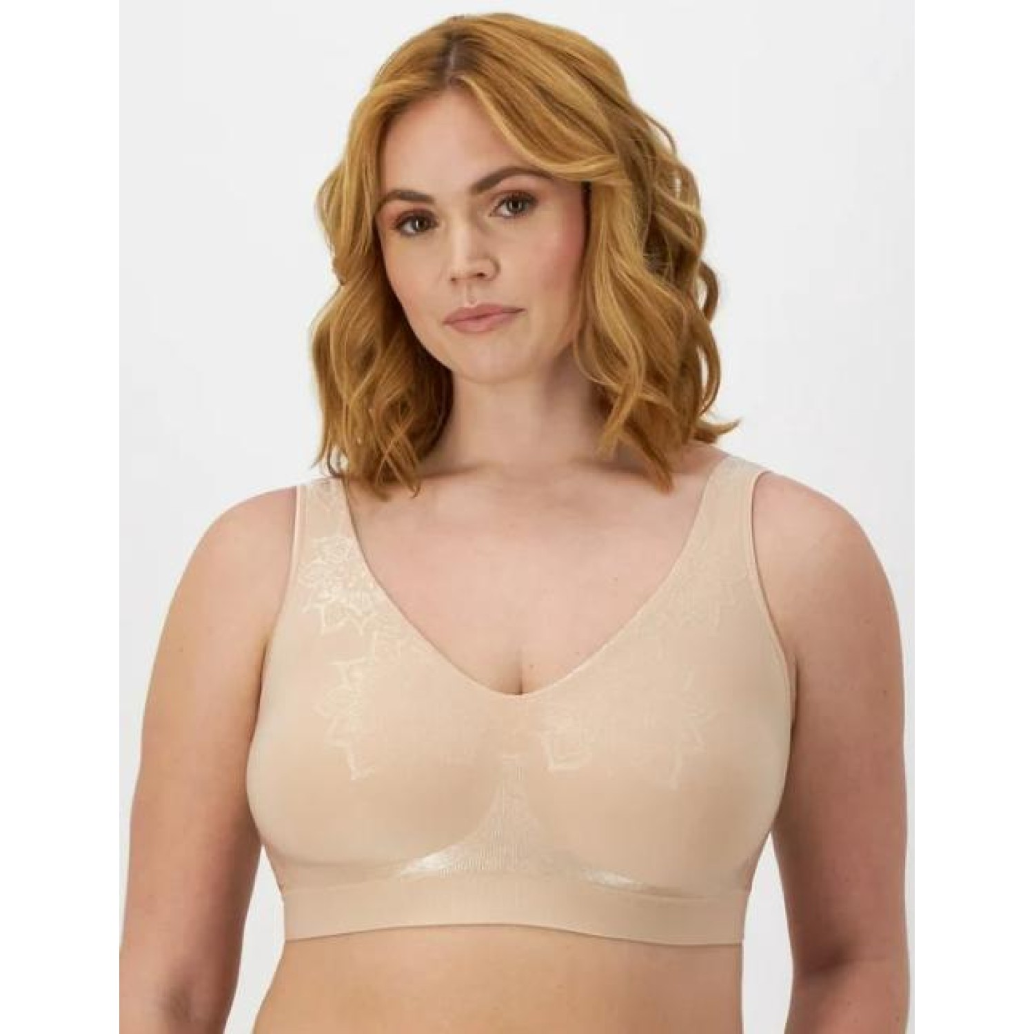 Comfort Revolution ComfortFlex Fit Seamless 2-Ply Wireless Bra Almond Aztec, Brown, S