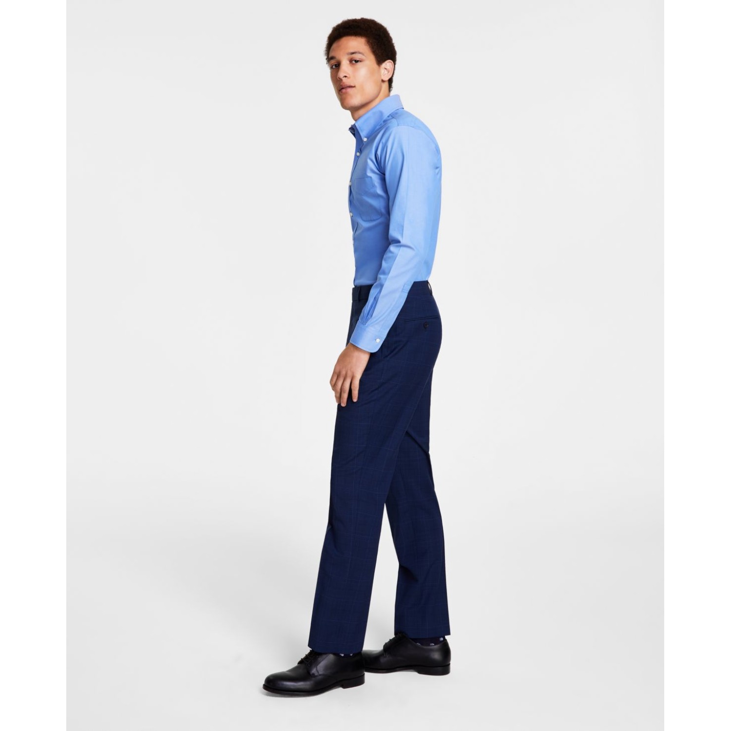 Men’s Classic-Fit Stretch Pinstripe Wool Blend Suit Pant, Navy, 32×30
