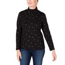Karen Scott Petite Leaf-Print Top (Deep Black, PXL)