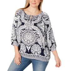 Style & Co. Women’s Smocked Paisley Printed Banded Hem Top (Grey, S)