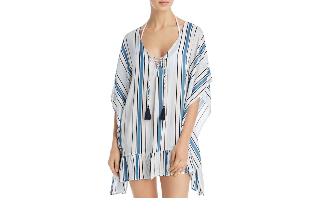 Ruffled Lace-Up Swim Cover-Up, Medium, Blue