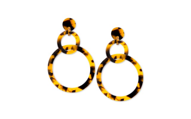 Linked Circle Acetate Drop Earrings, Beige
