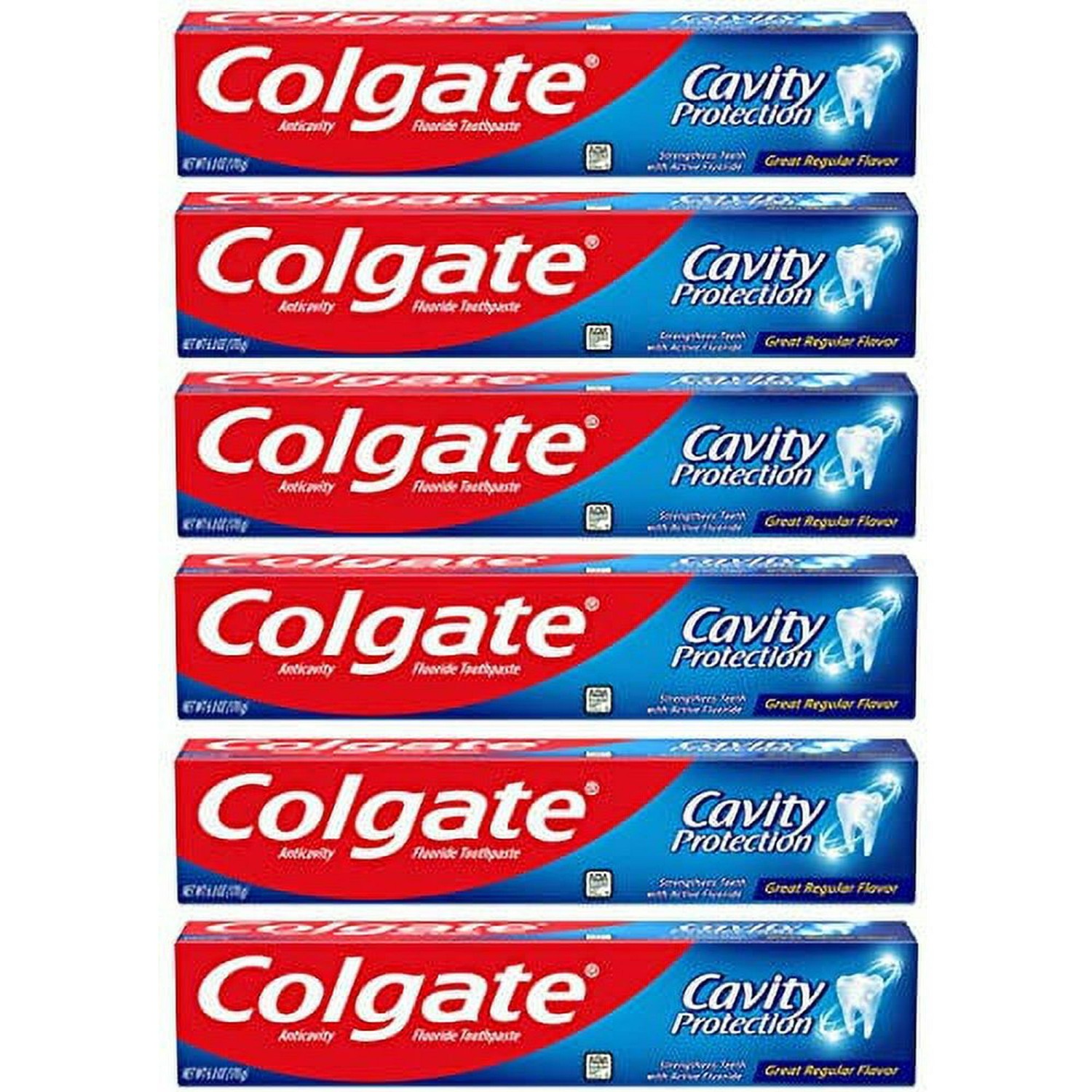 Cavity Protection Toothpaste with Fluoride, Great Regular Flavor, 6 Ounce Tube, 6 Pack