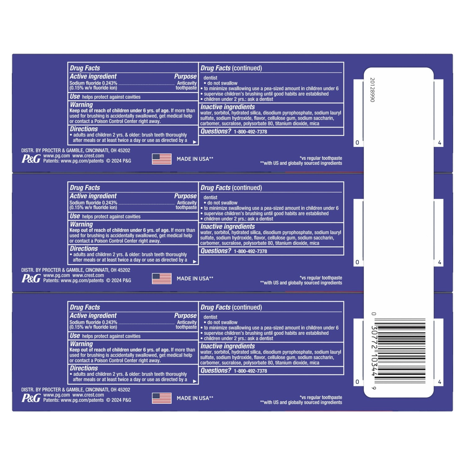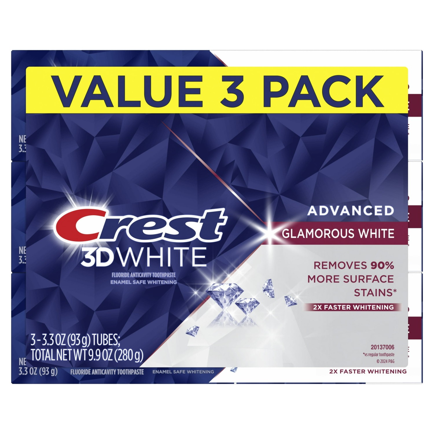 3D White Advanced Glamorous White Teeth Whitening Toothpaste, 3.3 oz, Pack of 3