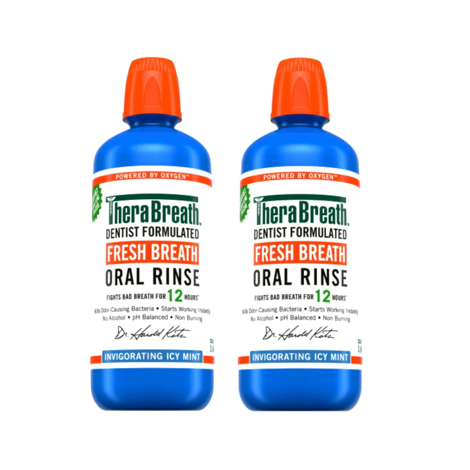 Fresh Breath Mouthwash, Icy Mint, Alcohol-Free, 2 Pack 1 Liter (33.8 fl oz)