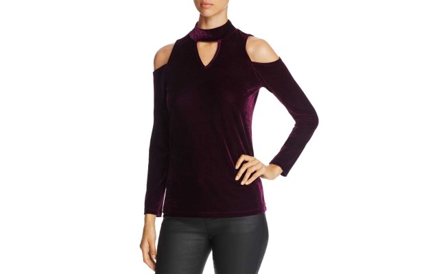 Women’s Velvet Cold-Shoulder Top, Red, Large