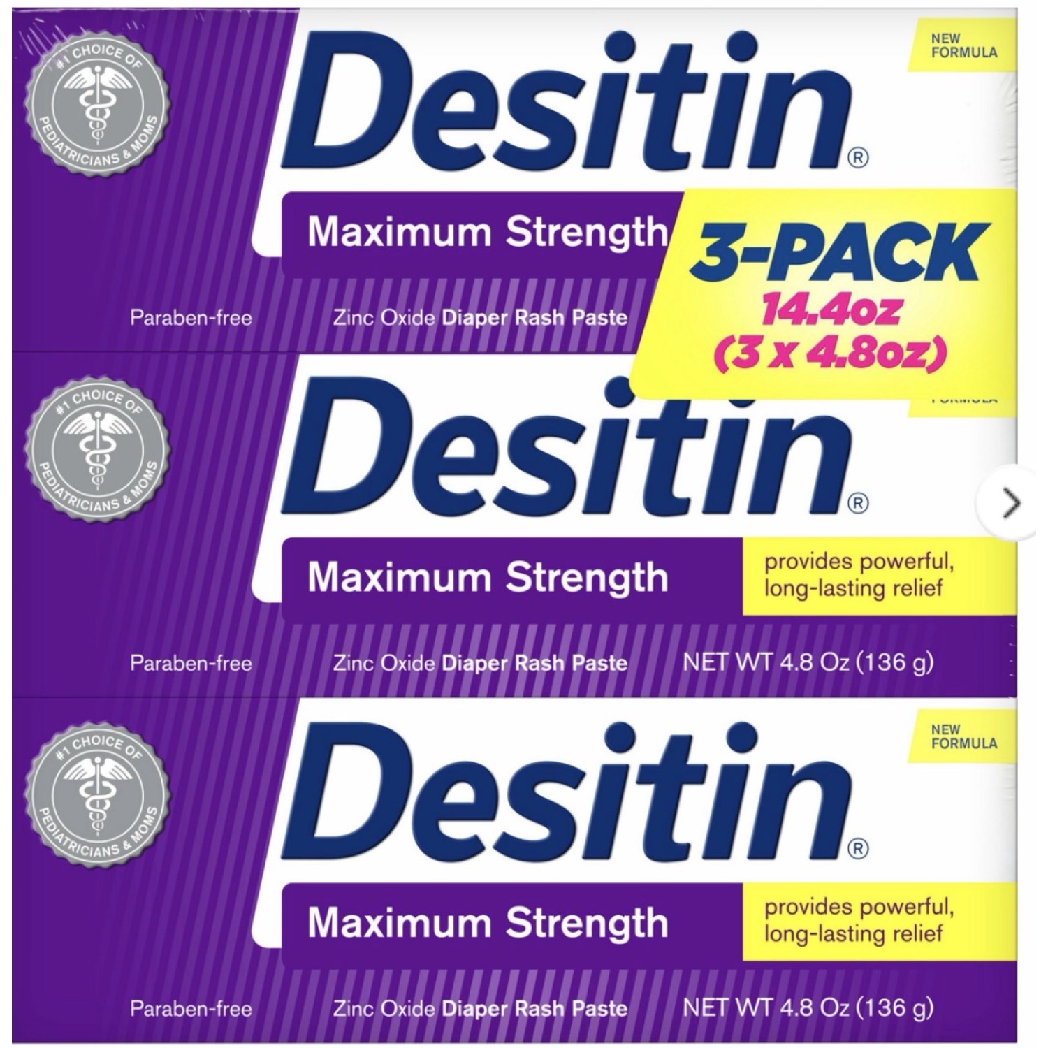Maximum Strength Zinc Oxide Diaper Rash Paste 4.8 oz. (Pack of 3)