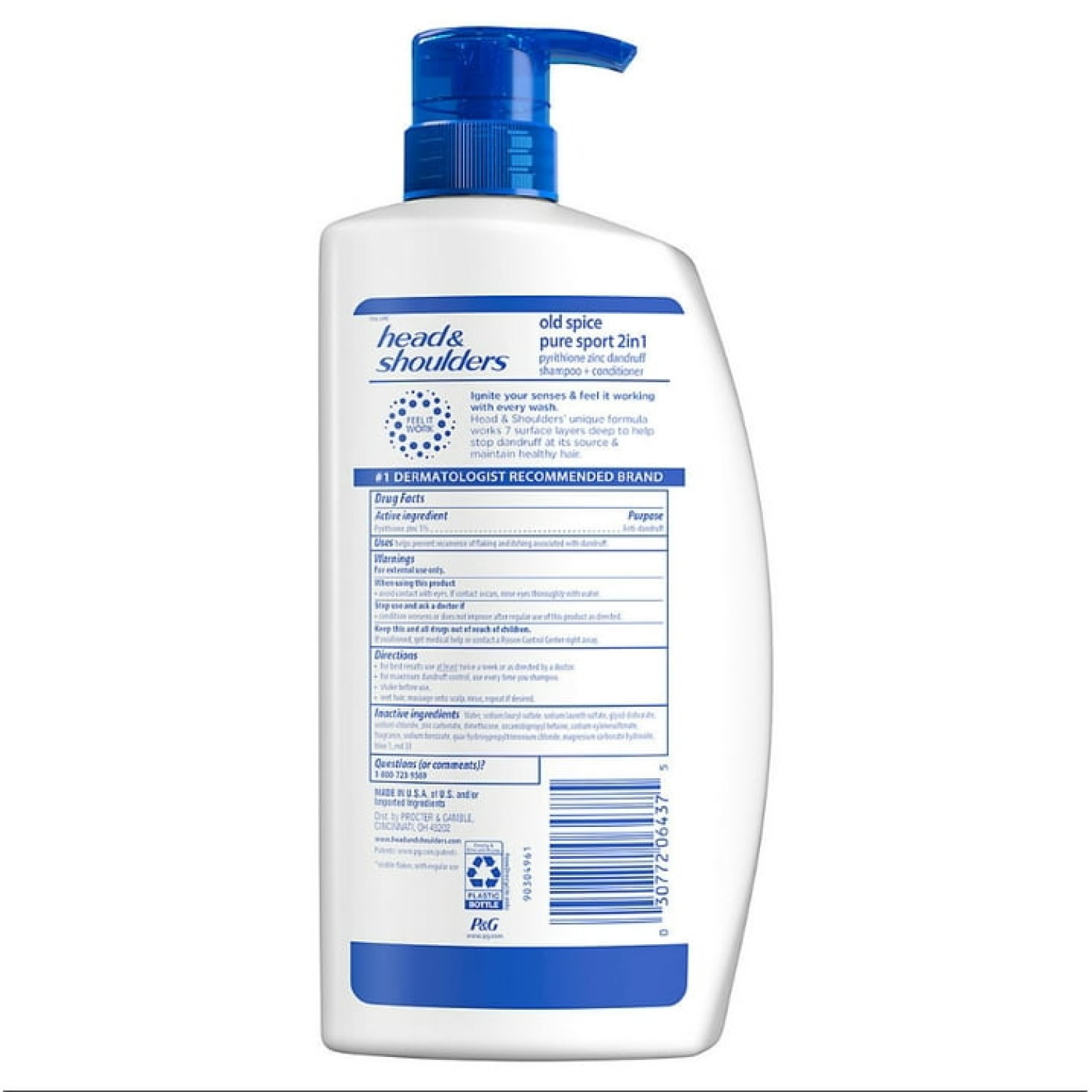 Men’s 2-in-1 Dandruff Shampoo and Conditioner – Old Spice Pure Sport, 40 oz.
