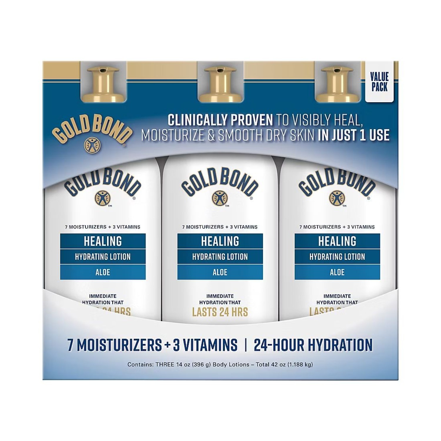Healing Hydrating Lotion With Aloe, 24 Hour Hydration, 3 pk./14 oz.