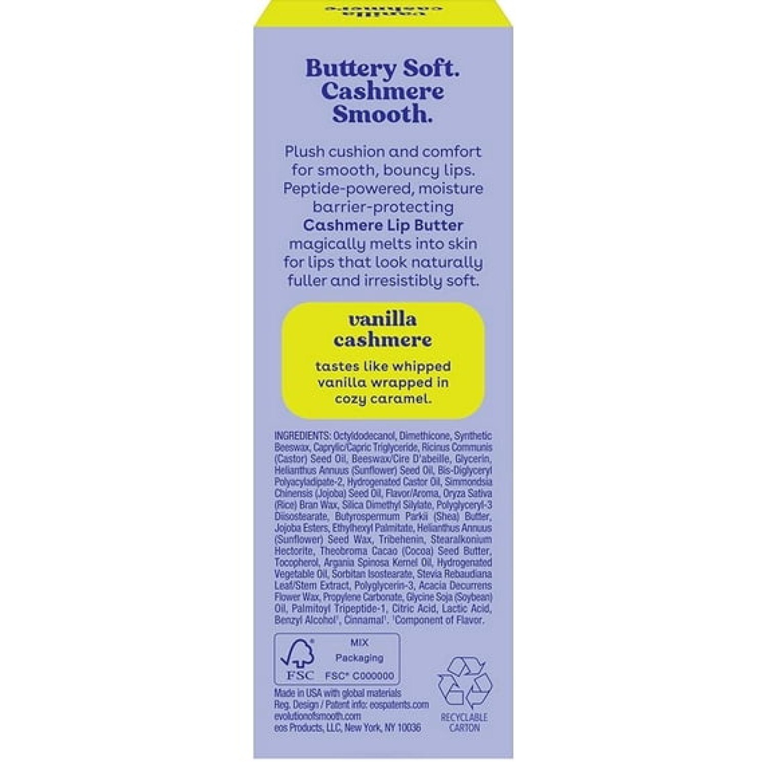 Cashmere Lip Butter, Vanilla Cashmere, Smooth & Hydrating Lip Butter with Peptides, 0.35 fl oz