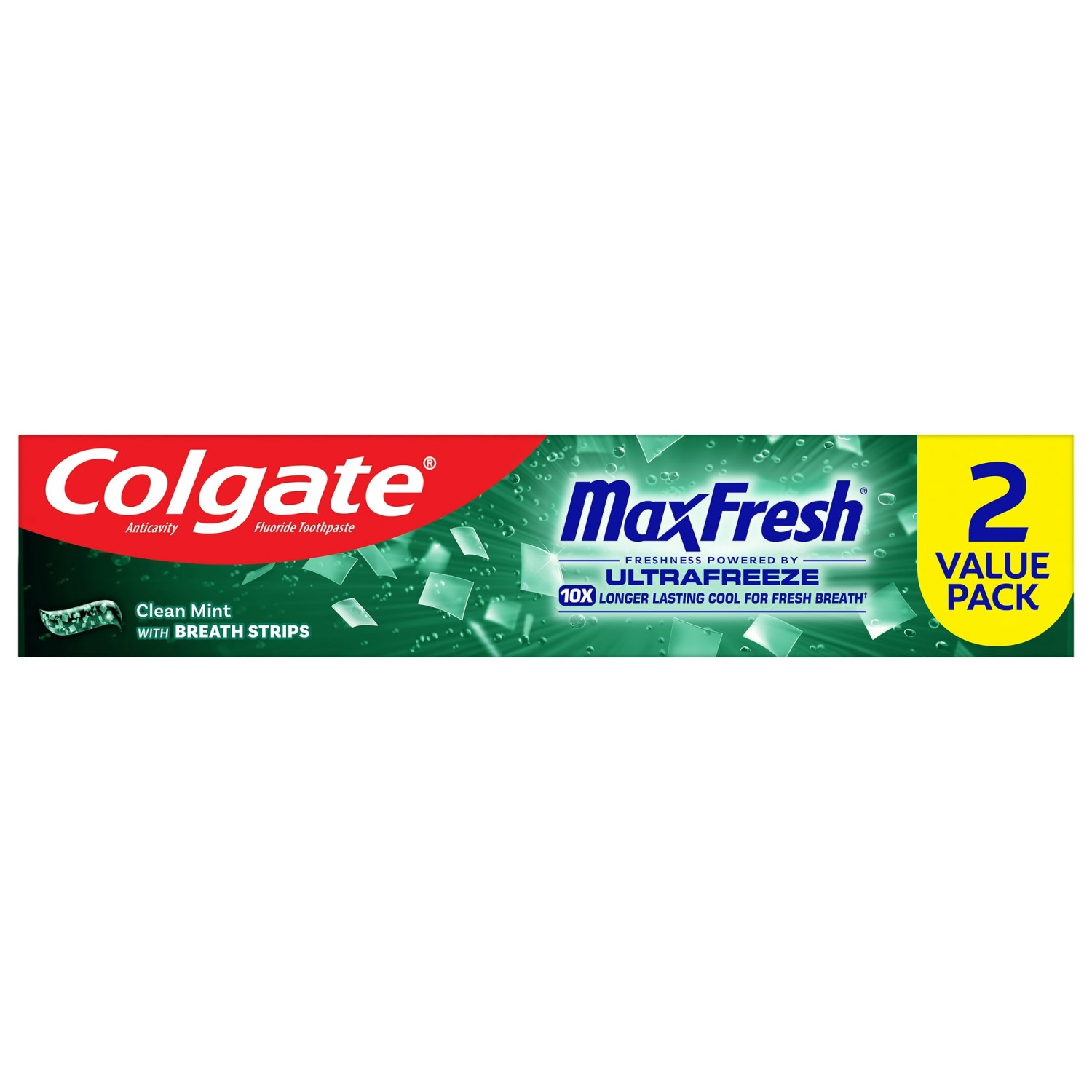 Max Fresh Toothpaste with Mini Breath Strips, Clean Mint, 6.3 Ounce (2 Pack)
