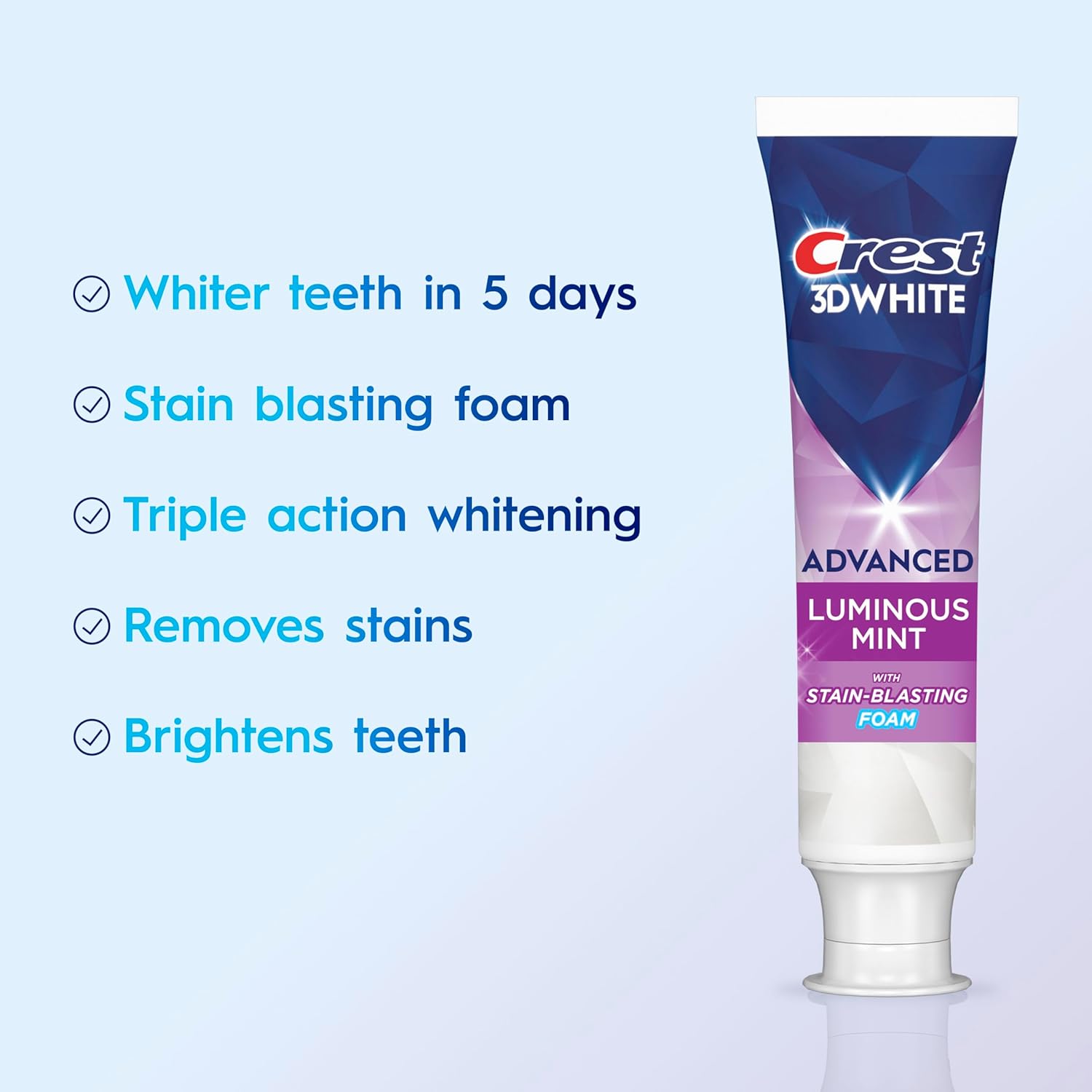Toothpaste, 3DWhite Advanced, Luminous Mint, 3.7 oz, Pack of 4