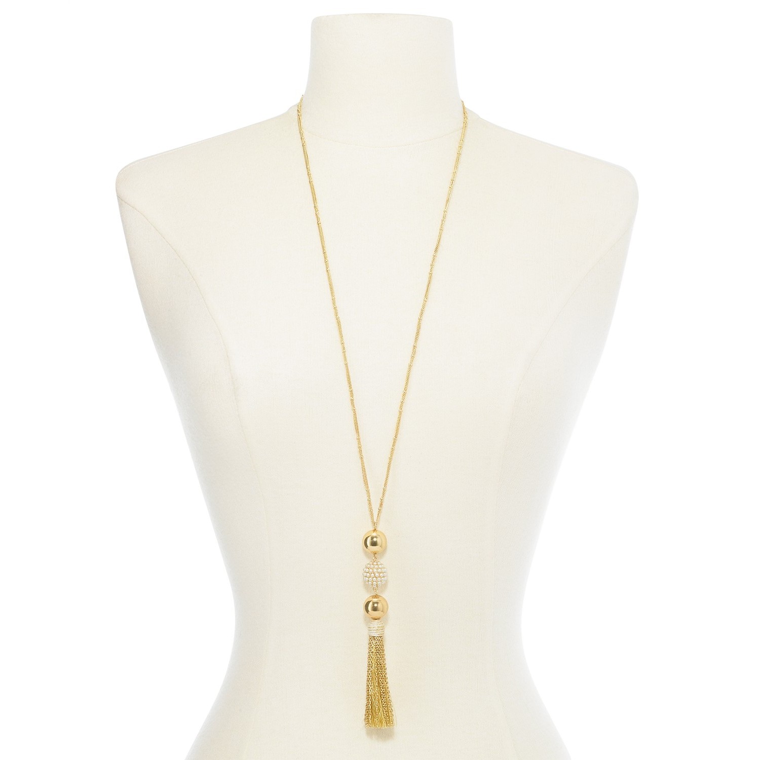 Imitation Pearl Fireball & Mixed Tassel Pendant Necklace