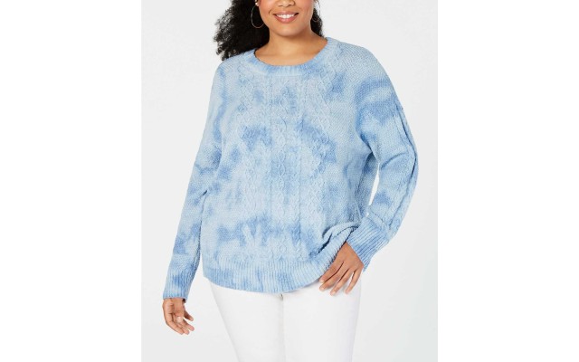 Woman’s Chunky Cable-Knit Sweater (Navy, 1X)