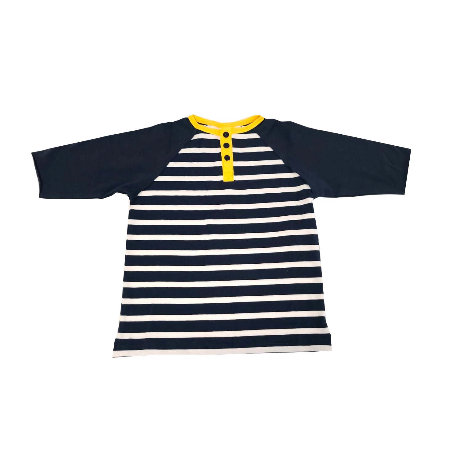 Boys Solid Cargo Polo Peruvian Cotton T-Shirt – Long Sleeve, Polo Neck With 3 Buttons, Navy Stripe, 5