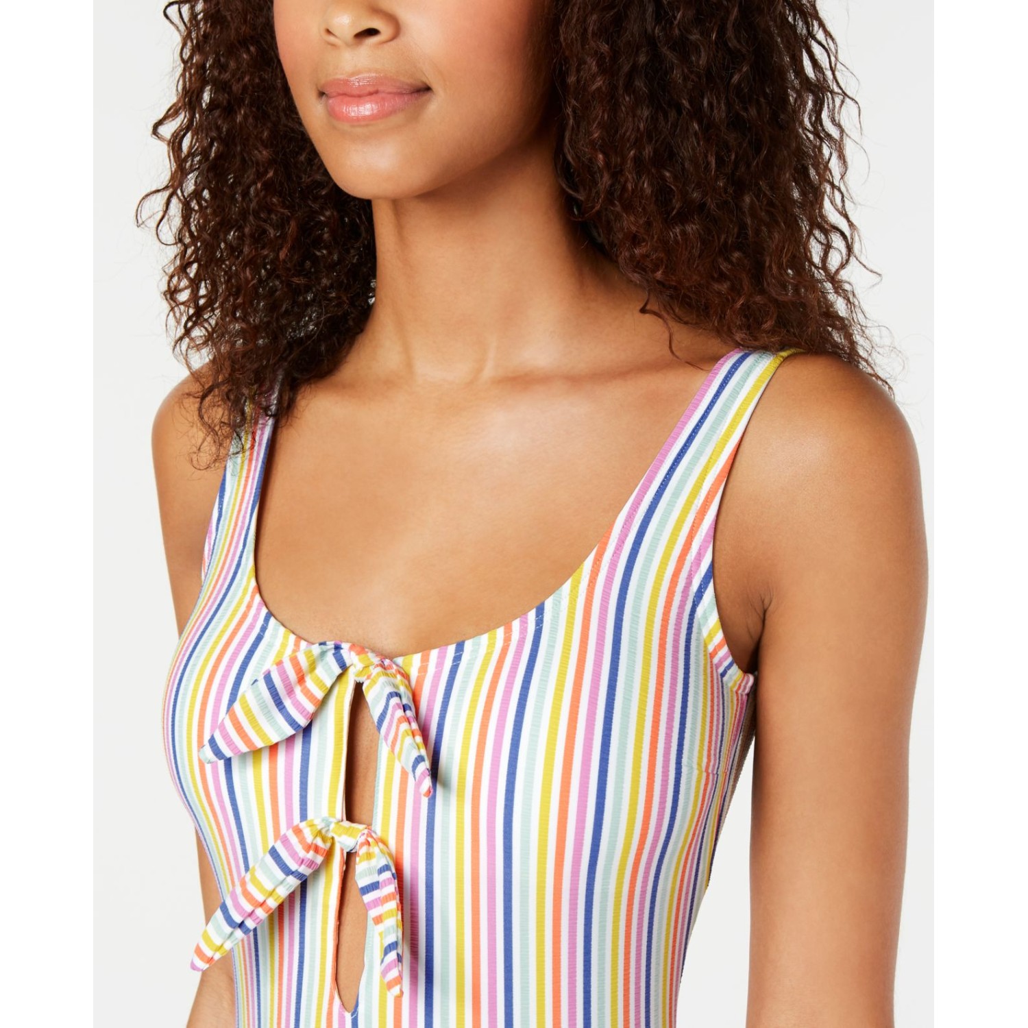 Beach Stripe Printed Tied One-Piece Swimsuit, MULTI/COLOR, X-Small