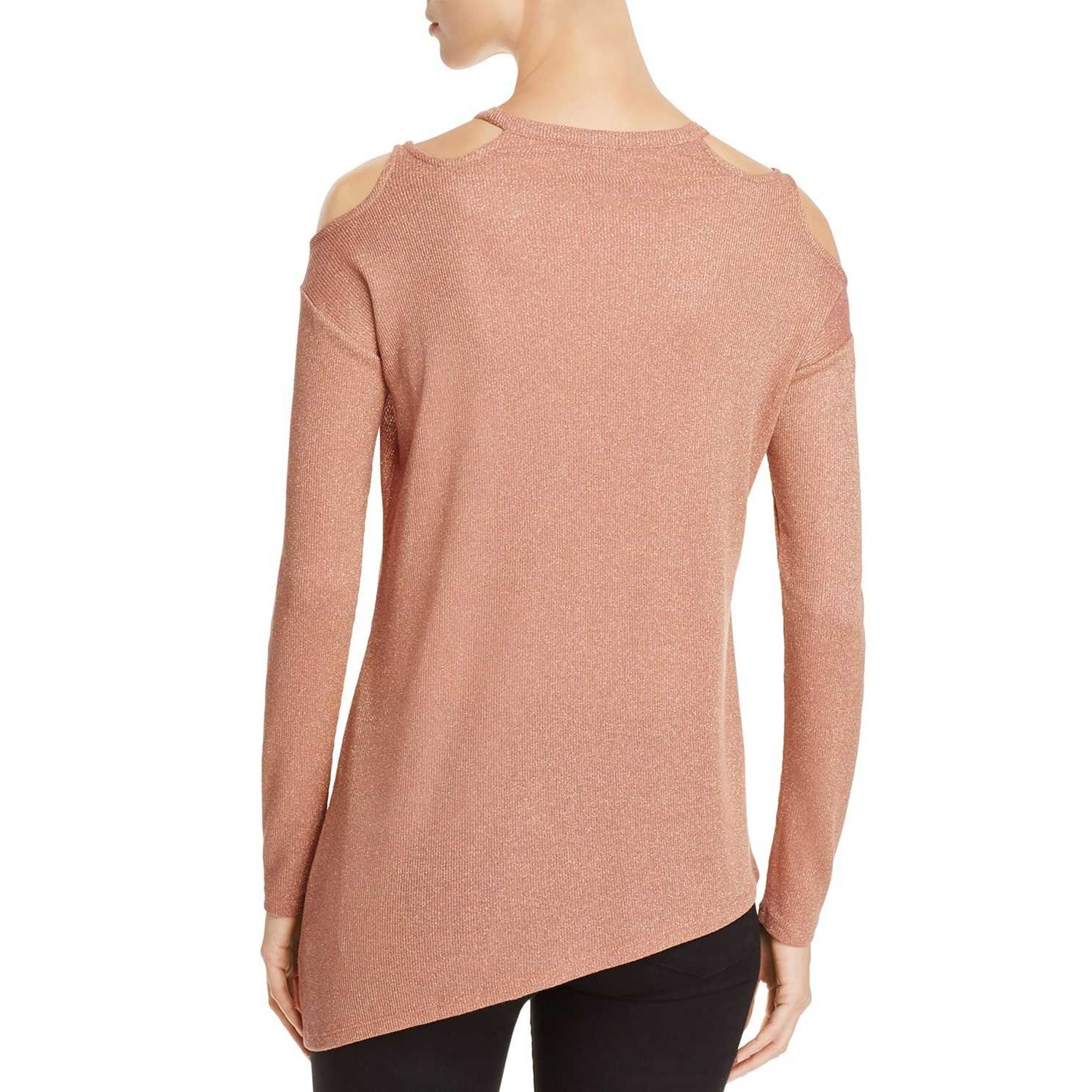 Women’s Metallic Cold Shoulder Sweaters, Pink, Large
