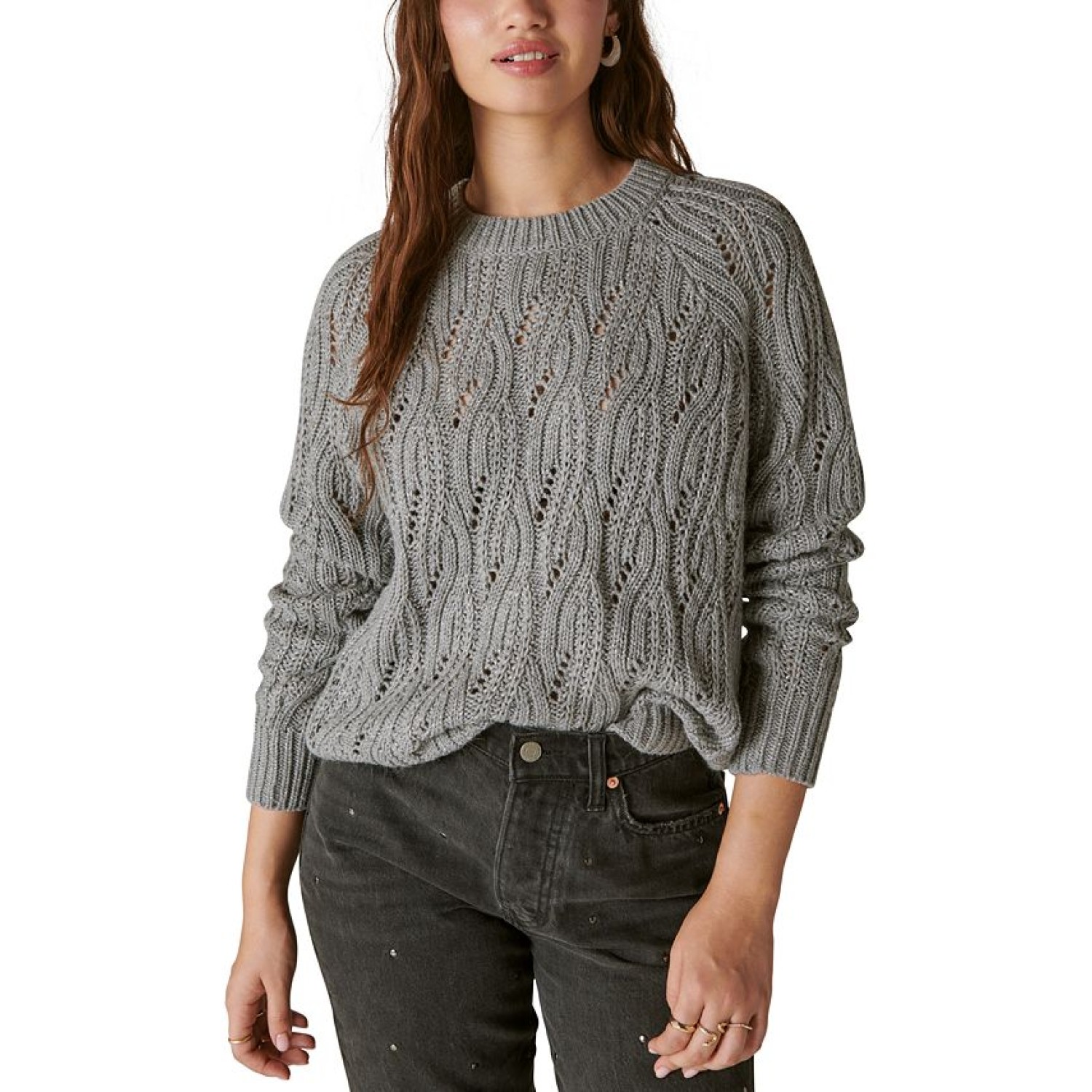 Women’s Shine Cable Knit Crewneck Sweater, Heather Grey, Medium