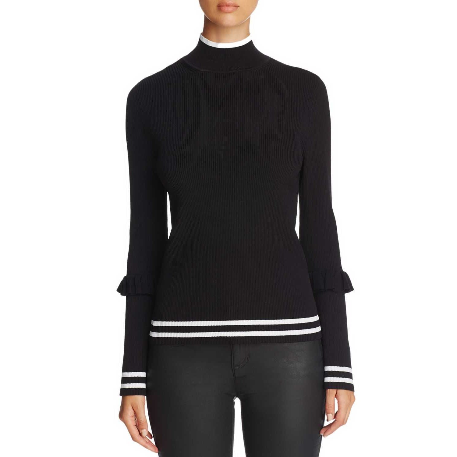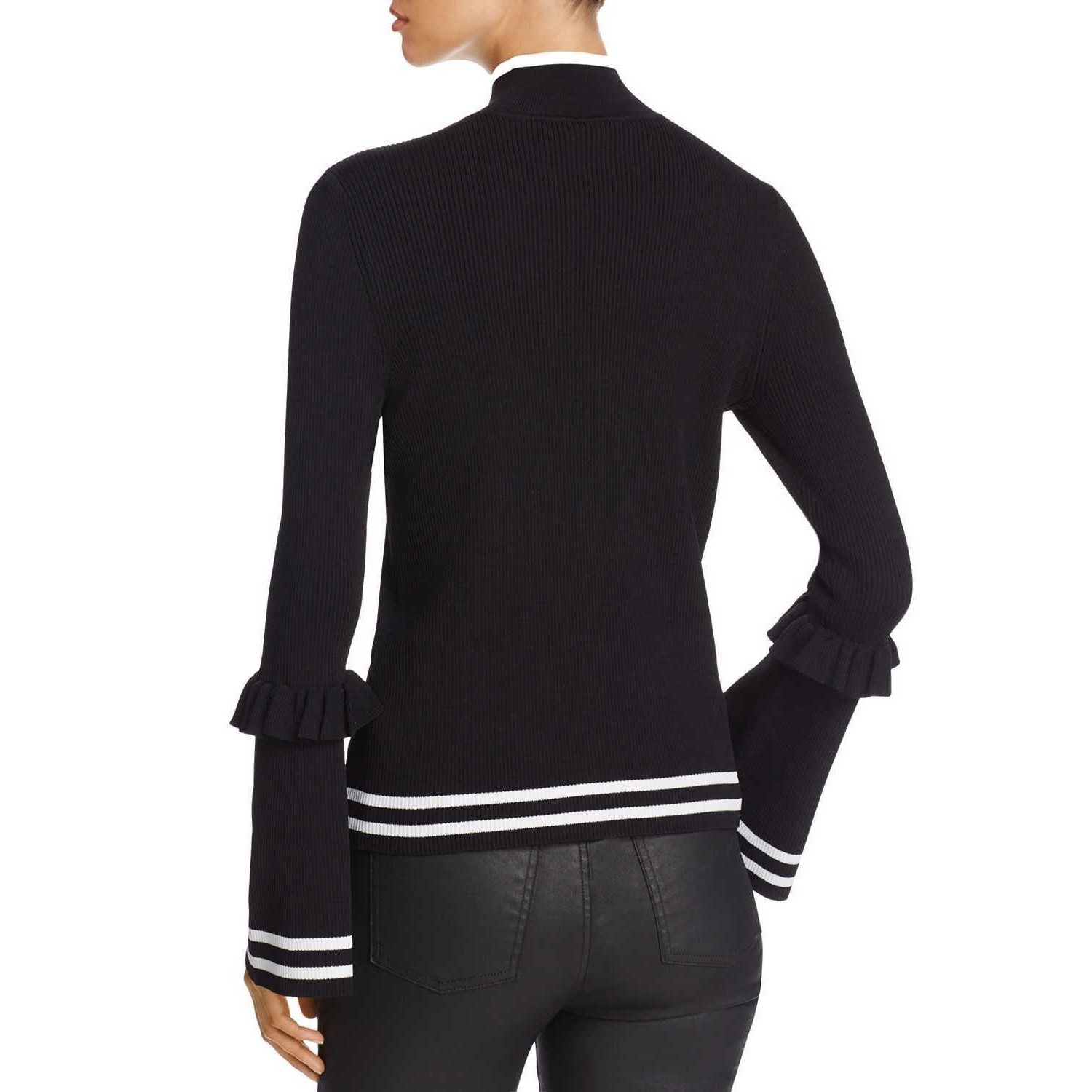 Women's Track Stripe Ruffle Trim Sweaters, Black, Medium
