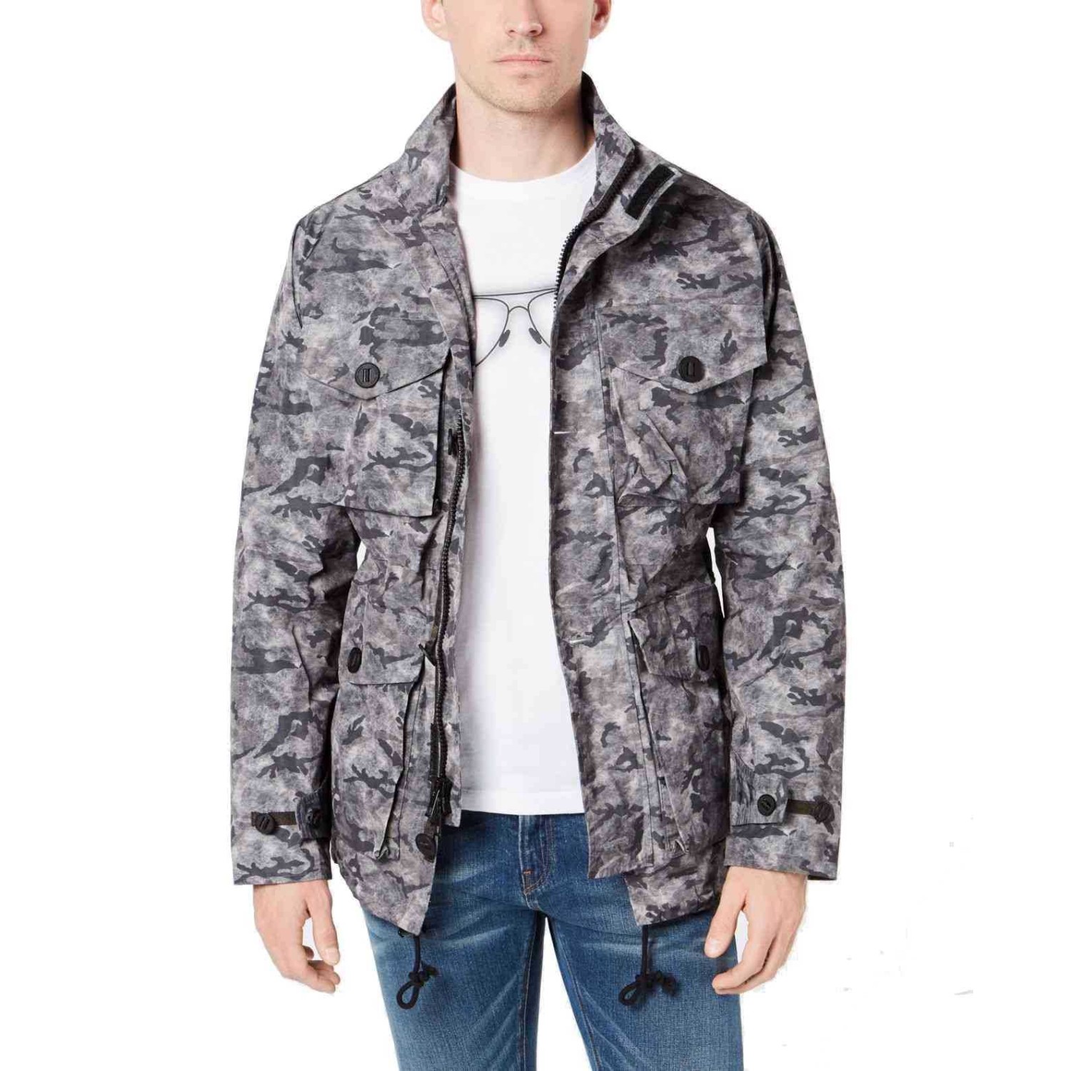 Men’s Camo Field Jackets, Camo Grey, Small