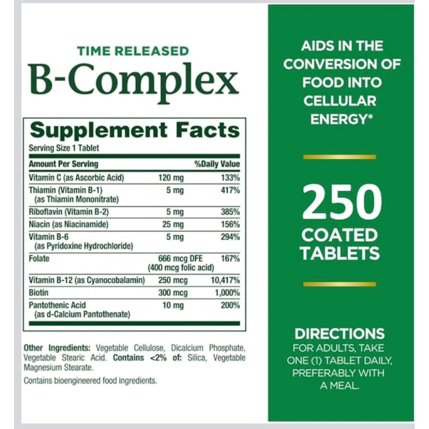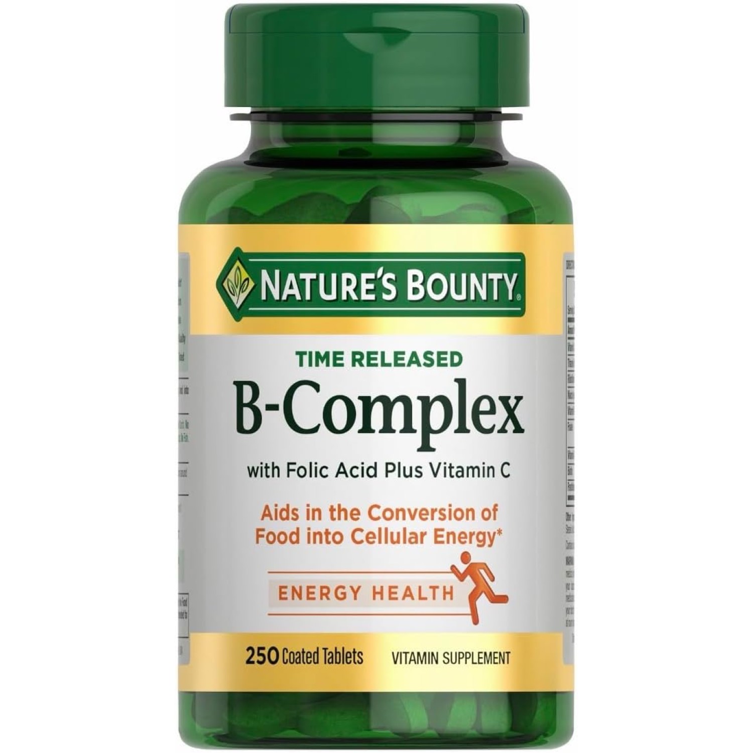 Nature’s Bounty Time Released B-Complex, Energy & Metabolism Support, with Vitamin C & Folic Acid, 250 Tablets