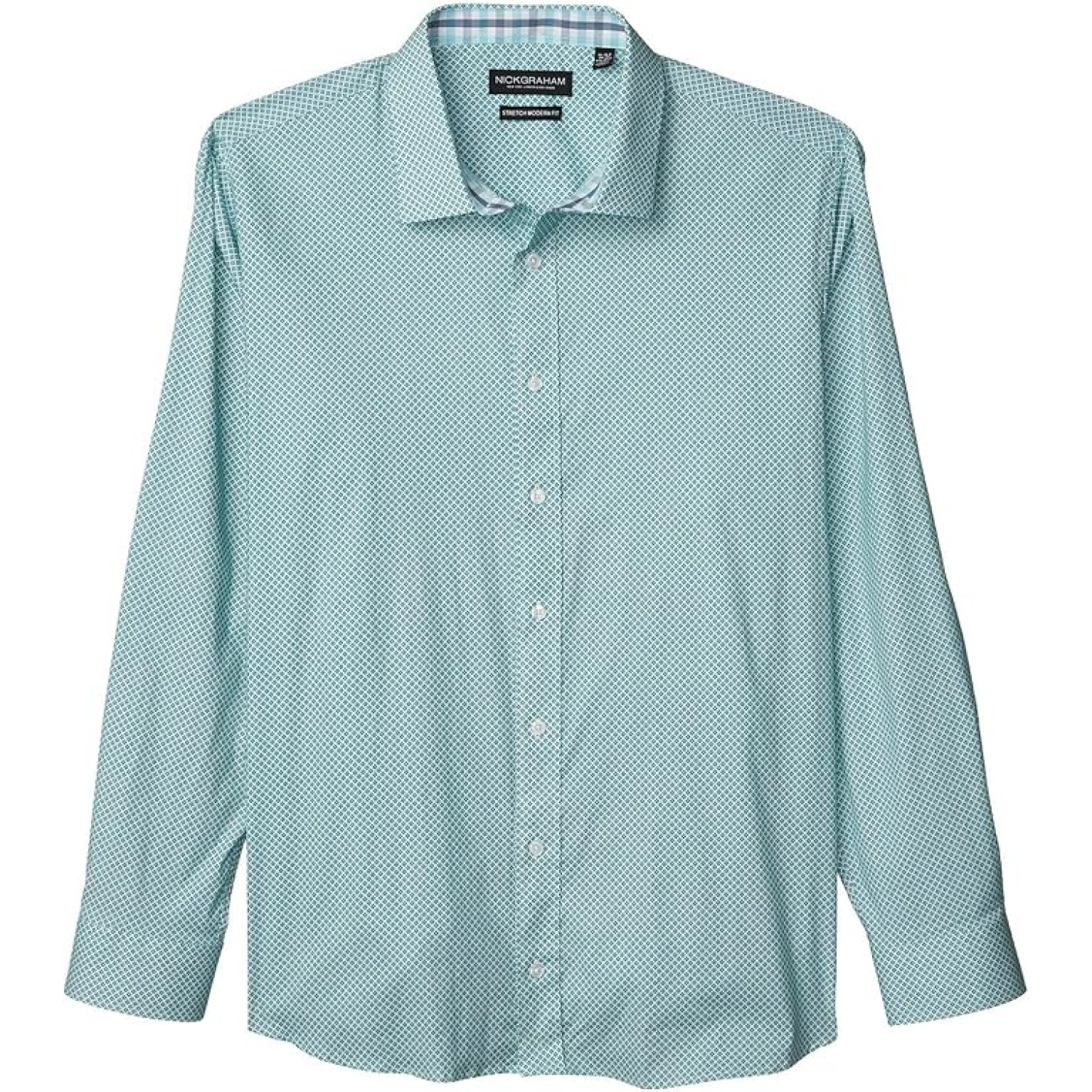 Men’s Modern-Fit Stretch Floral Medallion Print Dress Shirt, Aqua, 16/16.5″ Neck 32/33 Sleeve