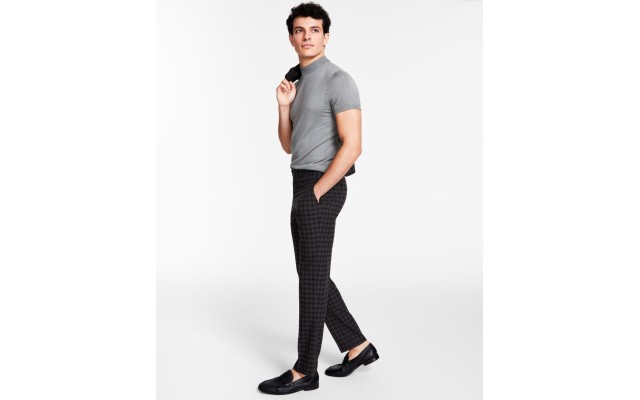 Men’s Slim-Fit Check Suit Pants, Brown, 29×30