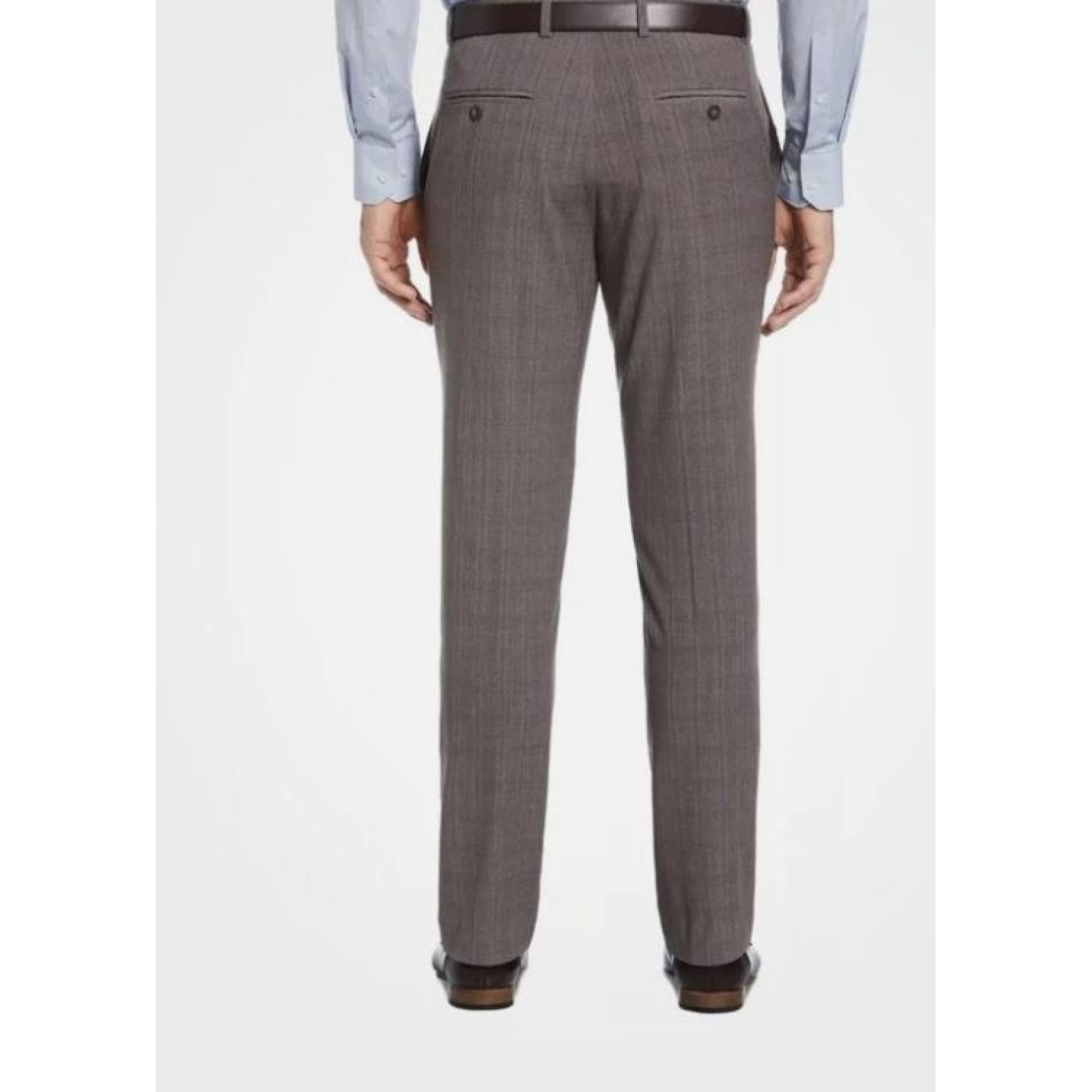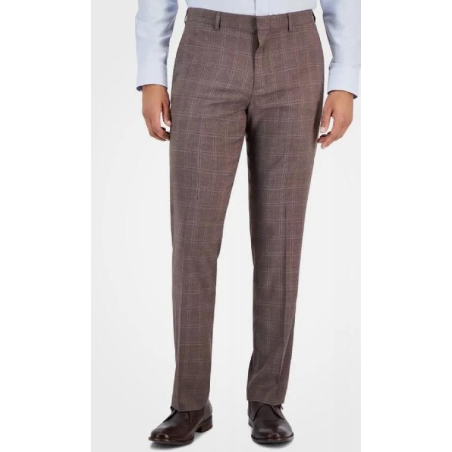 Men’s Slim-Fit Stretch Check Dress Pants, Brown, 38X30