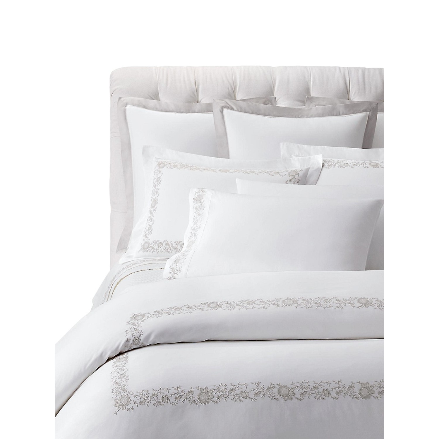 Eloise Standart Sham, True Platinum from Embroidery Cotton Duvet & Sham Collection