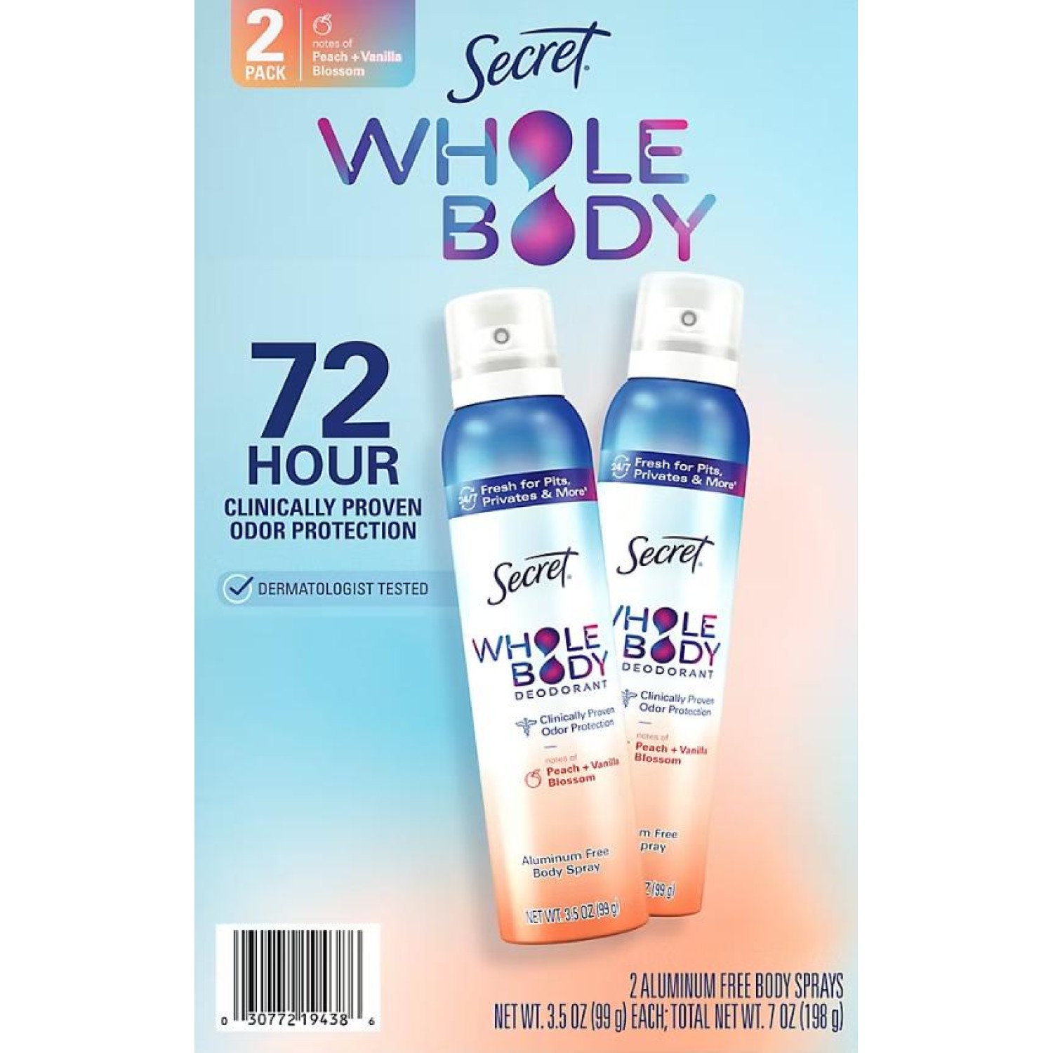 Body Aluminum Free Body Spray Deodorant For Women, Peach & Vanilla, 2 pk./3.5 oz.