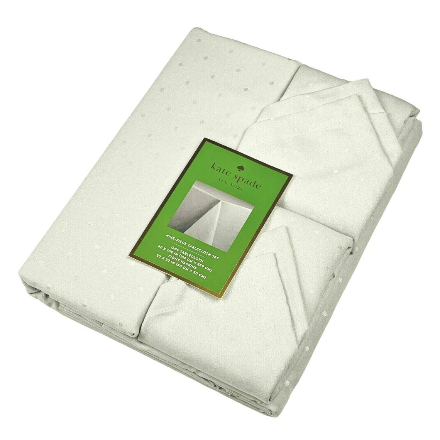 Kate Spade Larabee Dot Cotton Tablecloth (60″x102″ & 8 Napkins), Platinum
