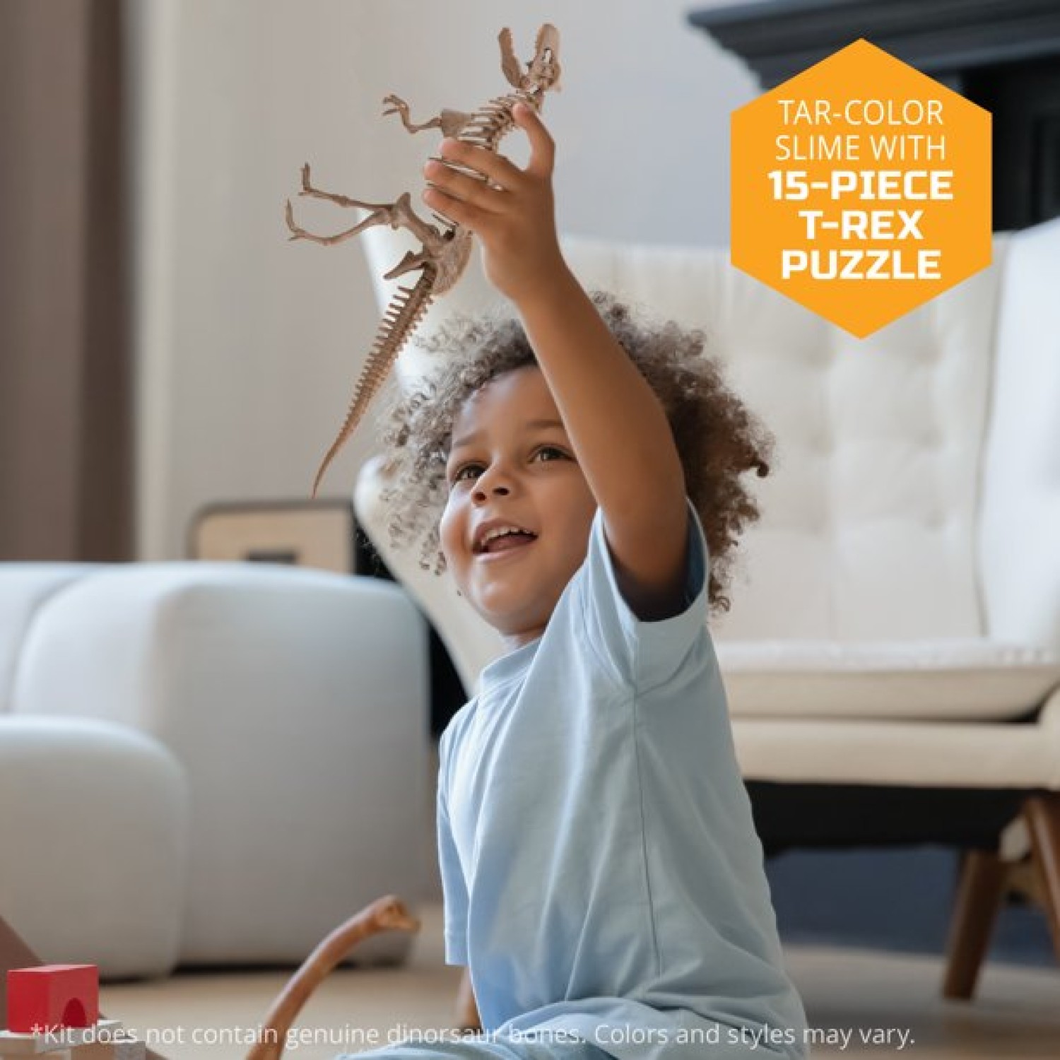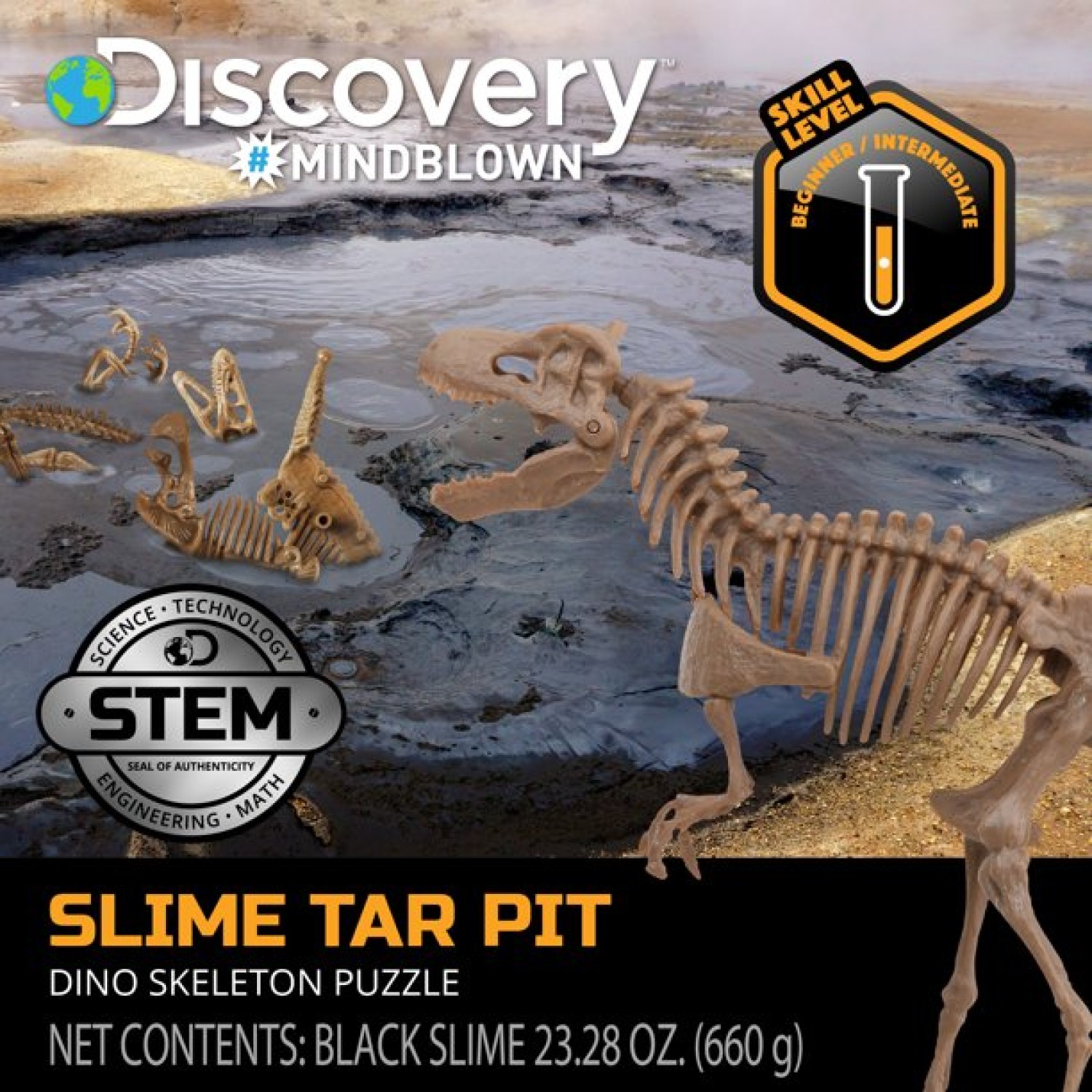 Discovery Mindblown Toy Dino Skeleton Tar Pit Model Uncover Bones in Slime Tube, DIY 10-Piece Velociraptor Puzzle