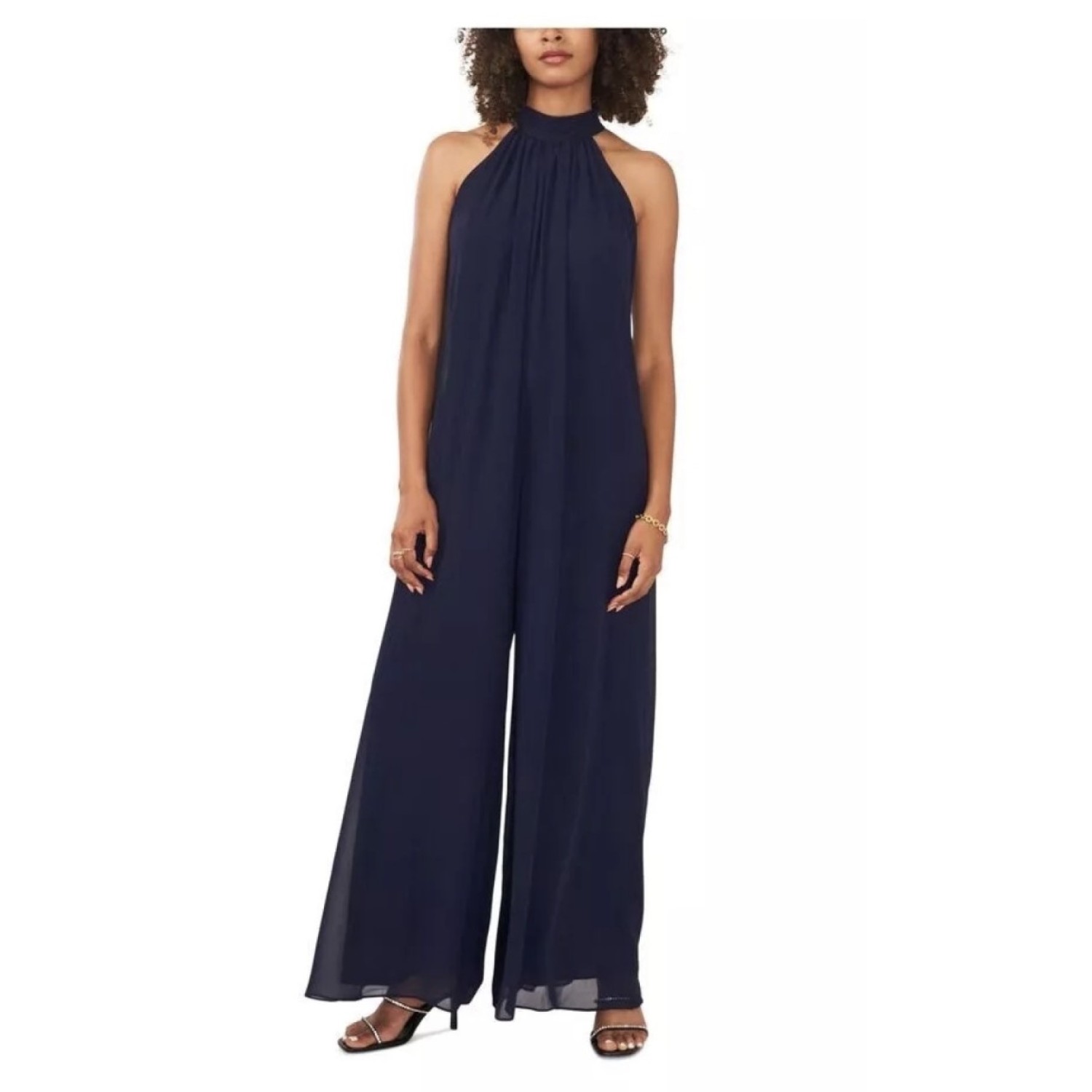 Women’s Halter Tie-Back Wide-Leg Jumpsuit, Navy ,X-Large