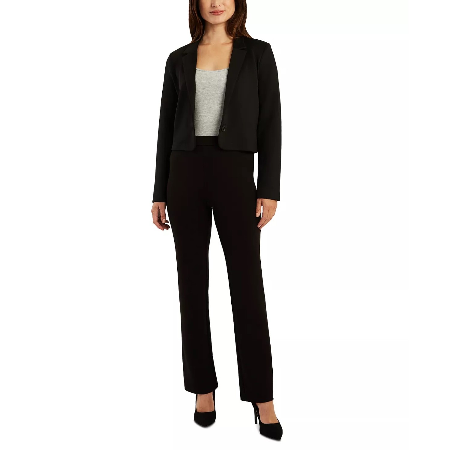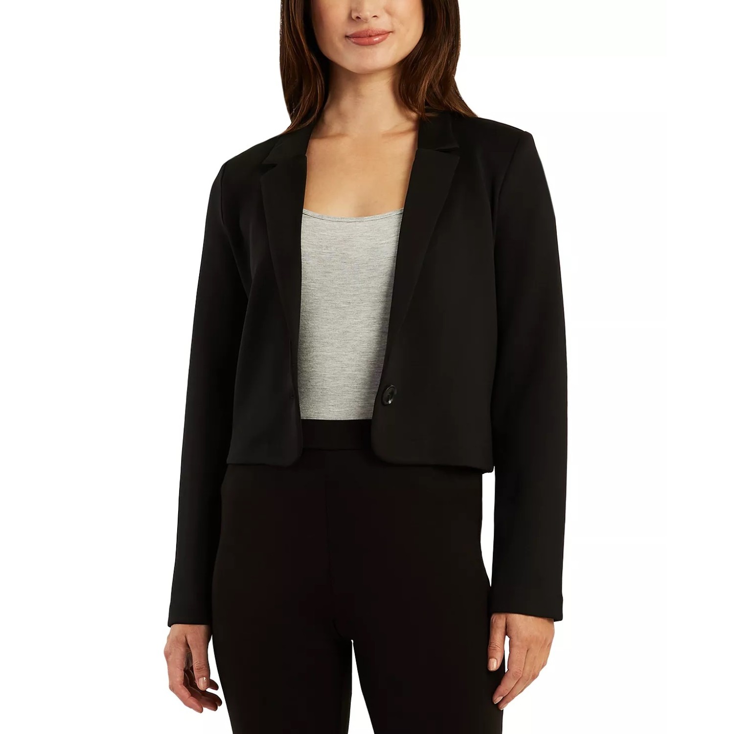 Juniors’ Notched Collar One-Button Cropped Jacket, Black, XL