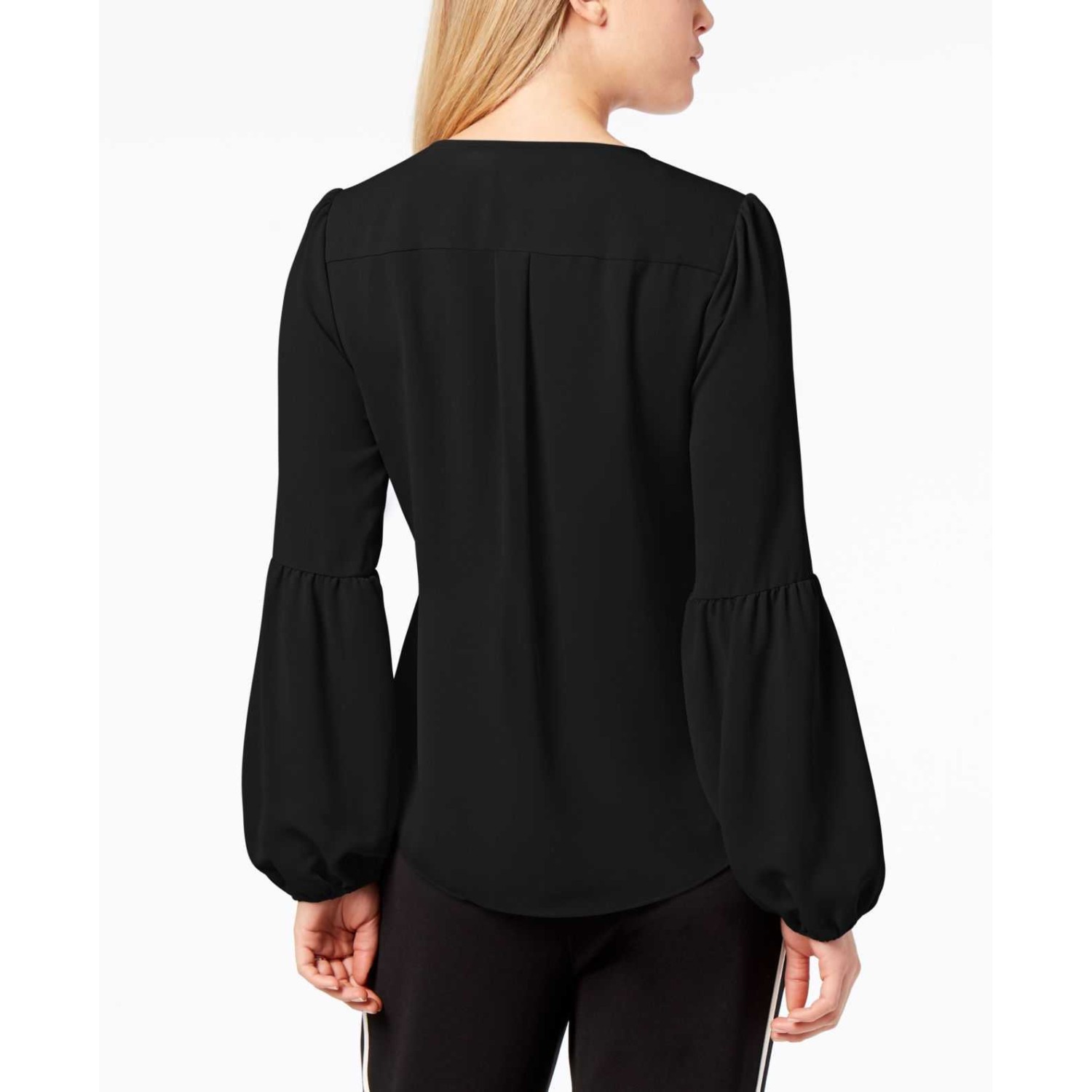 Blouson-Sleeve Surplice Top (Deepblack, XS)