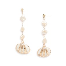 Aqua Half Shell & Cultured Freshwater Pearl Drop Earrings